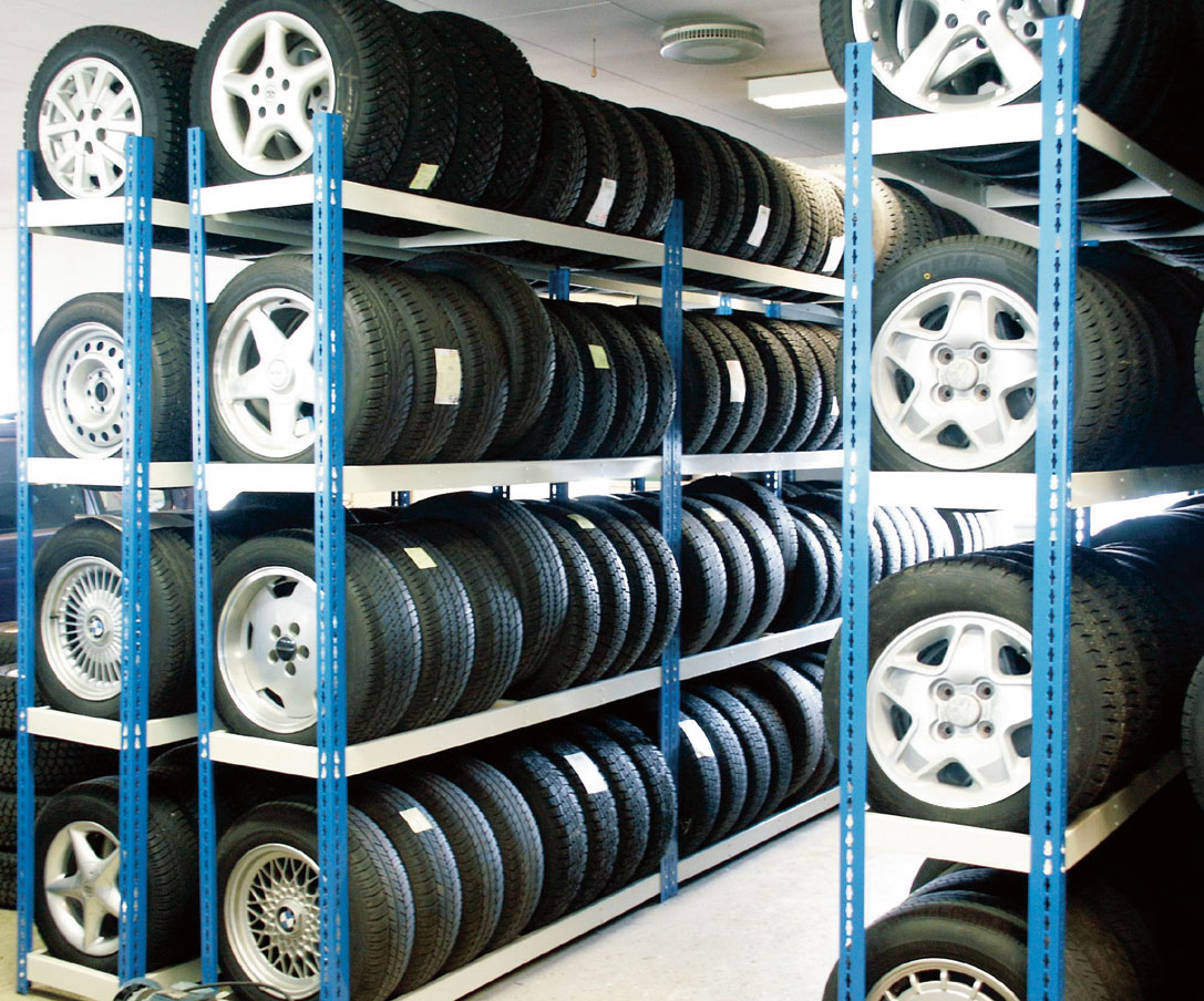 Regalni sistemi za gume so na izbiro v dveh višinah 2130 mm 3 police oz. 2440 mm – 4 police. Nosilnost police max. 400 kg. Sistem lahko sestavljamo v poljubni kombinaciji, samostojno oz. povezano. Montaža brez posebnega orodja – sistem natikanja, ki je lažji in hitrejši. Kovična glava se vstavi v odprtino ohišja, le ta se zaskoči, pri sestavi si pomagamo z gumijastim kladivom. Unikatna konstrukcija omogoča pristop z vseh štirih strani in ne potrebuje specialnih prečnih ojačitev. Na dnu regala so plastične zaščite, ki preprečujejo poškodbo tal.
